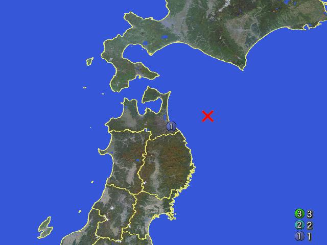 青森県東方沖 (北緯40.8度 東経142.4度 深さ70km)